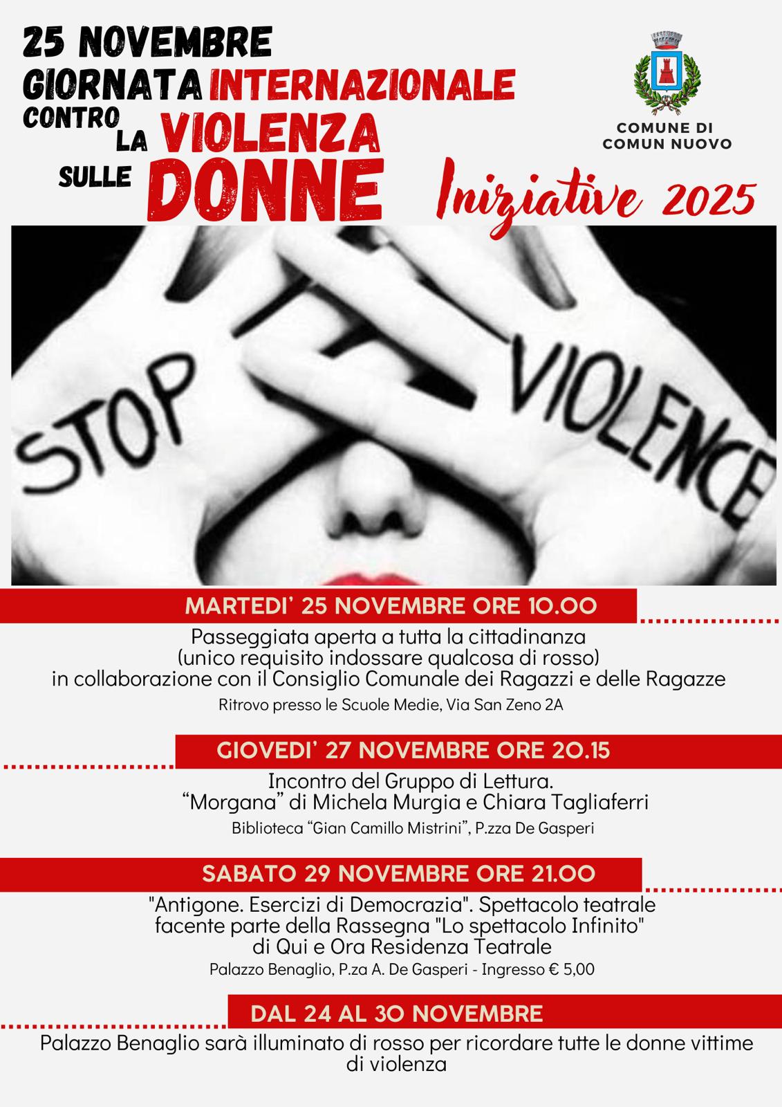 Iniziative organizzate dall'Amministrazione Comunale in collaborazione con la Biblioteca e le scuole per la Giornata Internazionale contro la Violenza sulle Donne.