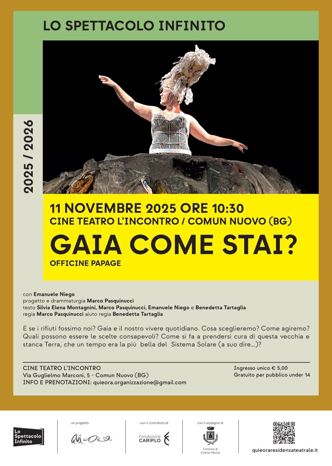 Spettacolo teatrale a cura di Officine Papage nell’ambito della rassegna “Lo Spettacolo Infinito” di Qui e Ora Residenza Teatrale.