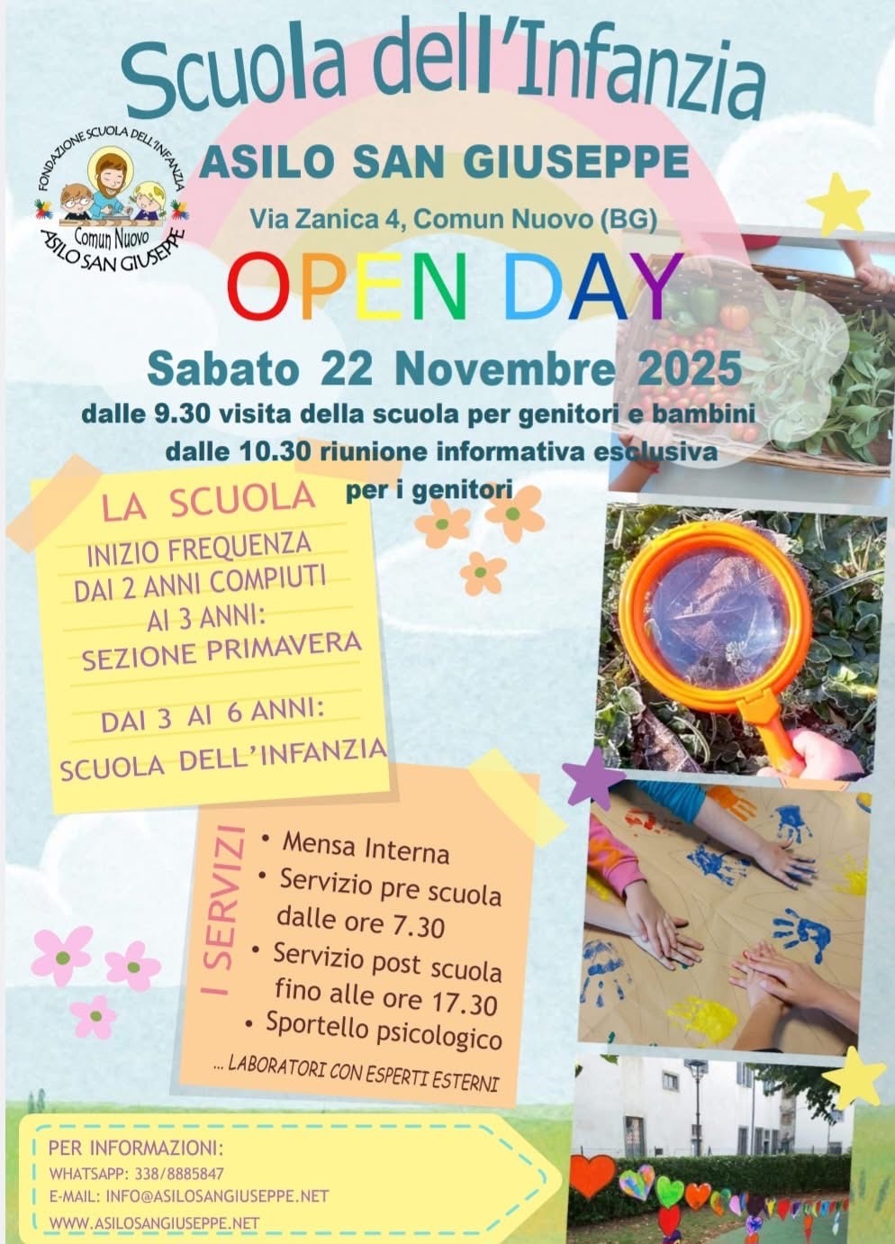 Si invitano le famiglie interessate all'open day della Scuola dell'Infanzia San Giuseppe che si terrà sabato 22 novembre 2025 alle ore 9.30.